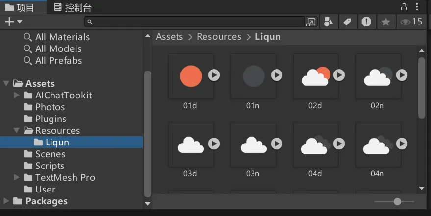 B.创建天气图标加载,采用字典,从持久化文件夹的一个文件夹中加载该图标集合